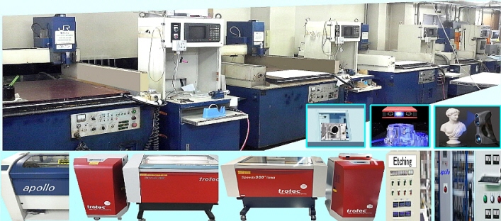 ◆銘板の原稿を撮影してネガまたはポジを作り、感光性のある版材に焼き付ける写真製版を応用した製作方法。 ◆ステンレス板、アルミ板、真鍮板に耐食性皮膜を構成した後、金属を溶解する薬剤によって表記部分を食刻して凹凸を形成、凹部分にメラミン樹脂塗料を 充填、焼き付け処理を施します。 ◆耐久性; 耐候性、高級感のあり、凹凸が残るため広く使用されています。