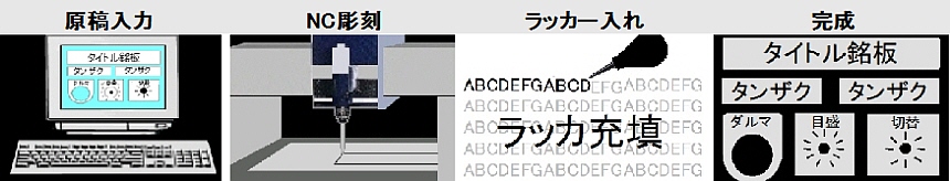 加工=NC彫刻機で製作、1枚からリピート迄銘板対応