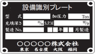 機械定格銘板アルミ. 設備識別プレート. 製造番号プレート.