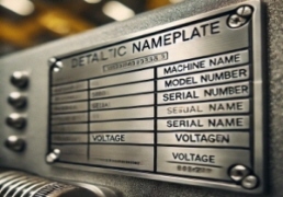 機械に取り付ける銘板は、耐候性に優れているアルミ銘板を多く利用します。